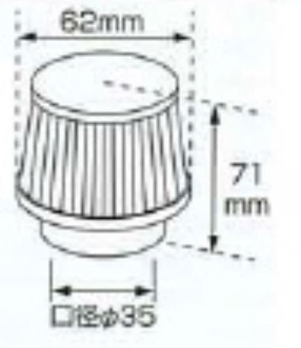 ※パワーフィルター(ストレート) パワフルな走りを求める方におすすめします。特殊フィルターを使用する事により、吸気効率が向上し、パワーを増大します。優れたフィルターを使用する事はエンジンの寿命を延ばす事につながります。※各寸法はフィルターを垂直に立てた状態で、フィルター上面からダクト最下部までの長さを表記しています。 Φ35カーボンタイプ ▼備考:※装着にはキャブレターセッティングが必要です