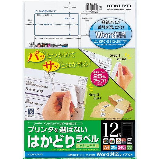 [ラベル用紙]台紙から剥がし易いタイプ(貼り作業効率がコクヨ従来製品より25%の時間短縮を実現)大量のラベル貼りに最適!