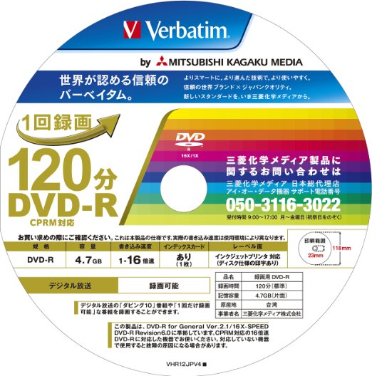 | 商品小分類 | DVDメディア | 型番 | VHR12JP50V4 | |||||