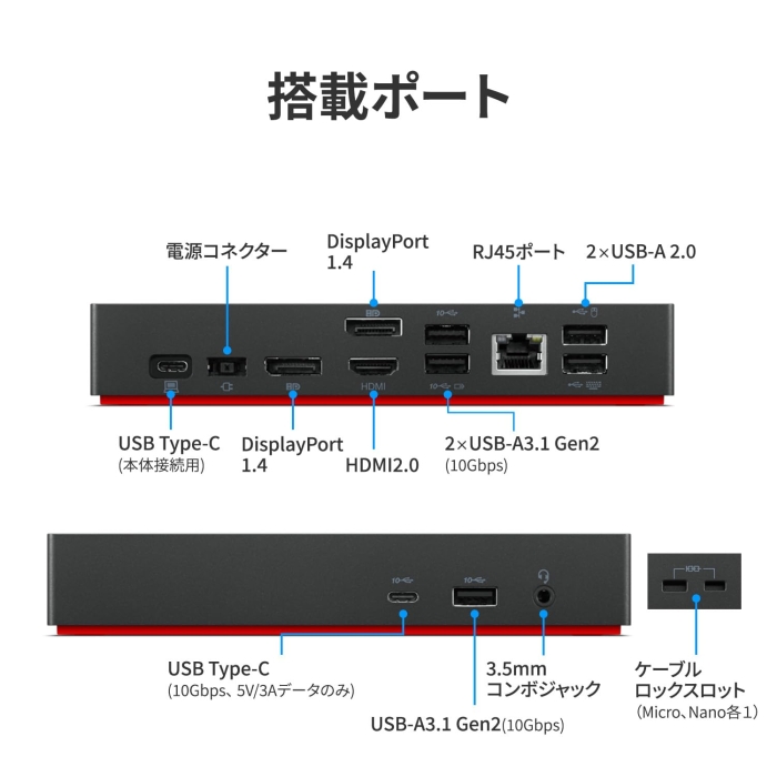LENOVO レノボ ThinkPad ユニバーサル USB Type-C ドック ハブ ドッキングステーション Displayport HDMI USB-A USB Type-C イーサネット コンボジャック Kensington ロックスロット搭載 40AY0090JP