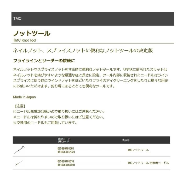 ECJOY!では TMCノットツール をはじめ、その他商品も取り揃えておりますので、あわせてご利用ください。