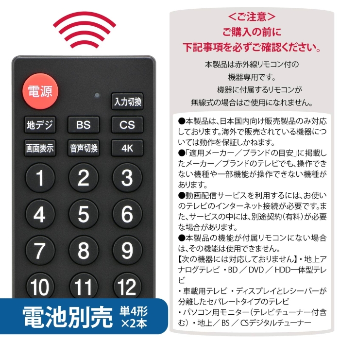 ECJOY!では シンプルTVリモコン(50メーカー対応/単4形×2本使用/ブラック) AV-R580N-K をはじめ、その他商品も取り揃えておりますので、あわせてご利用ください。