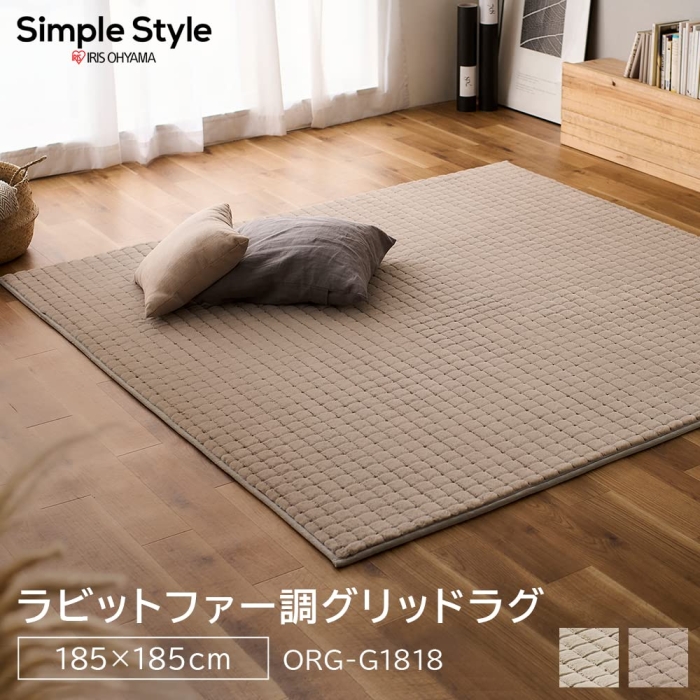 IRISOHYAMA アイリスオーヤマ アイリスオーヤマ ラグ カーペット マット 185×185cm ファー ふわふわ ラビットファー調グリッドラグ ORG-G1818 ベージュ