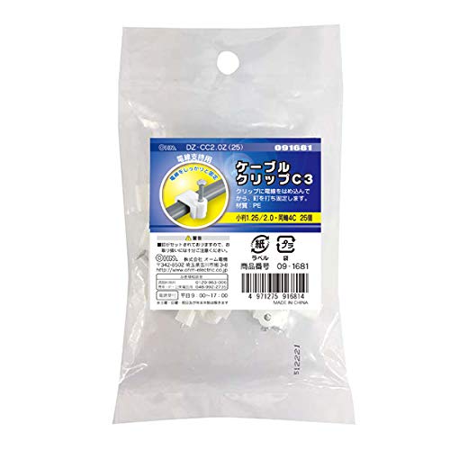 OHM オーム電機 ケーブルクリップ C3 25個入 白 (09-1681)