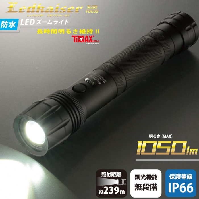 OHM オーム電機 LED高機能ライト(最大1050 lm/スライドフォーカス/無段階調光/単4形×6本または3本使用/連続使用単4形×6本MINで28時間/保護等級IP66) LHA-KS461PZ-K2