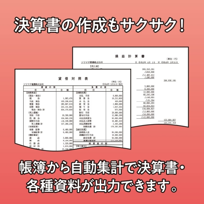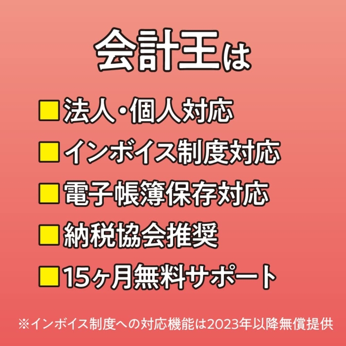 [財務/会計]インボイス制度対応版。電子帳簿保存法にも対応。法人・個人両対応。かんたん、安心、使いやすい会計ソフト。 ◆ お客様満足度No.1の会計ソフト(法人・個人両対応)。インボイス制度に対応。金融機関のデータを自動取込、ビックデータに基づいて科目を推察し自動で仕訳、転記、集計されるので簿記に詳しくなくてもかんたんに入力が可能。会計業務作業を大幅に軽減。財務諸表、キャッシュフロー計算書、5期経営分析で正確な経営状況も把握可能。消費税の自動計算対応。ユーザー登録後、最大15ヶ月電話サポート無料、次期製品無償提供。個人事業者の確定申告・電子申告に対応(R4年度版は1月下旬以降に無償提供)。