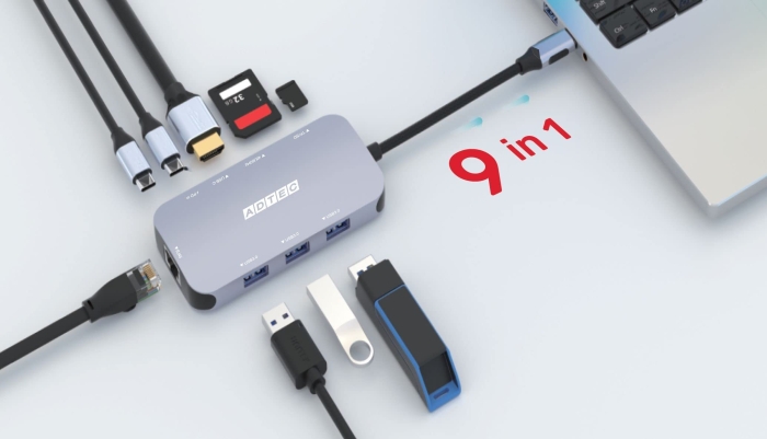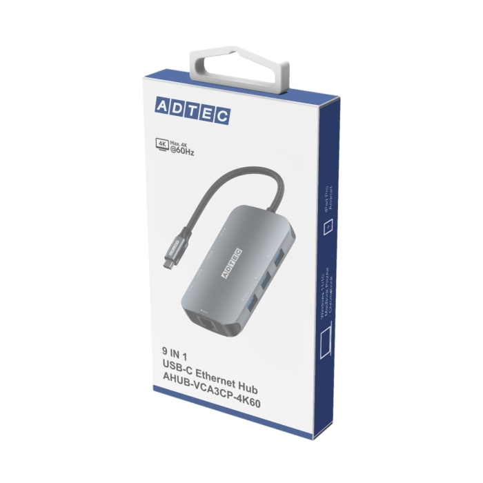 ADTEC アドテック マルチポートハブ 9in1 USB-C (Type-C, Type-A, SD/TF slot, LAN, 4K FulHD)【AHUB-VCA3CP-4K60】