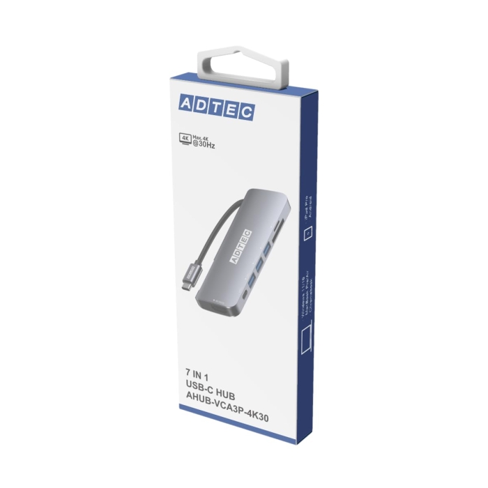 ADTEC アドテック マルチポートハブ 7in1 USB-C (Type-C, Type-A, SD/TF slot, 4K FulHD)【AHUB-VCA3P-4K30】