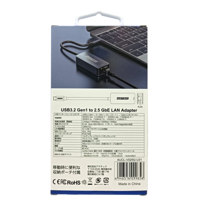 ADTEC アドテック Gigabit Ethernet LANアダプタ Type-C【AUCL-V025G-U31】