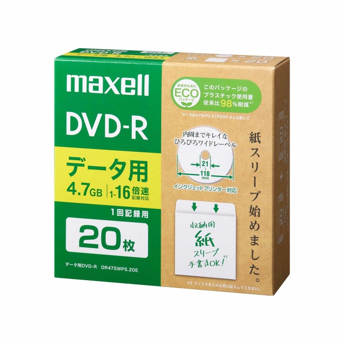 マクセル(maxell) マクセル(Maxell) DRD120SWPS.20E データ用DVD-R エコパッケージ 1-16倍 4.7GB 20枚(DR47SWPS20E)
