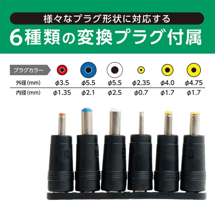 ナカバヤシ ミヨシ MCO ノイズの少ないトランス式AC-DCアダプタ 6種プラグ付属 出力電圧安定回路内蔵 4.5V出力 最大700mA出力 ケーブル長1.8m ADA-T45/E