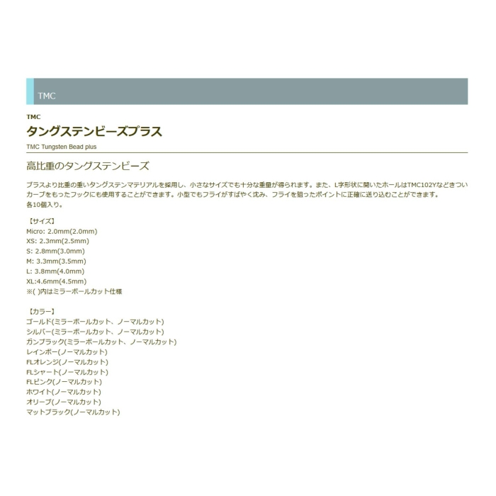 ECJOY!では ティムコ TMCタングステンビーズ+ ノーマル S 2.8mm ホワイト をはじめ、その他商品も取り揃えておりますので、あわせてご利用ください。