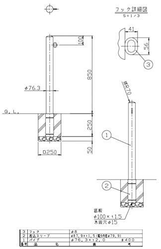 差込式・φ76.3 H=850mm ◆ 差込式・φ76.3 H=850mm