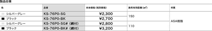 ECJOY!では KS-76PO-BK# 自然換気用フード をはじめ、その他商品も取り揃えておりますので、あわせてご利用ください。