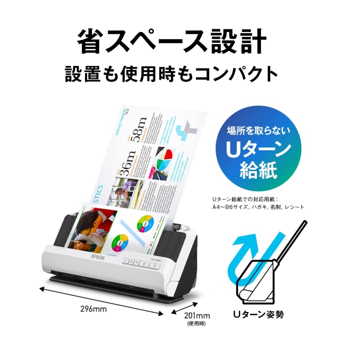 EPSON エプソン DS-C420W ドキュメントスキャナー 両面読み取り可 A4/はがき/名刺/レシート 600 dpi USB接続