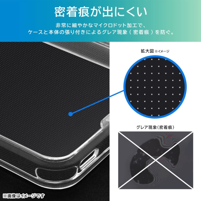 [ケース/カバー(モバイル)]傷が付きにくく透明感が長持ち×衝撃を吸収し端末を保護 ◆ カメラレンズに傷が付きにくい。背面は傷に強い素材【鉛筆硬度2H】。衝撃をやわらげる四つ角のエアクッション構造 。ボタンや端子周りまで保護。
