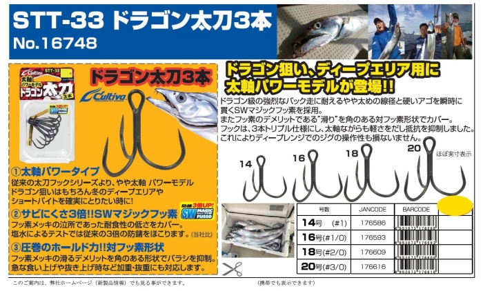 オーナーばり 16748 STT-33 ドラゴン太刀3本 18