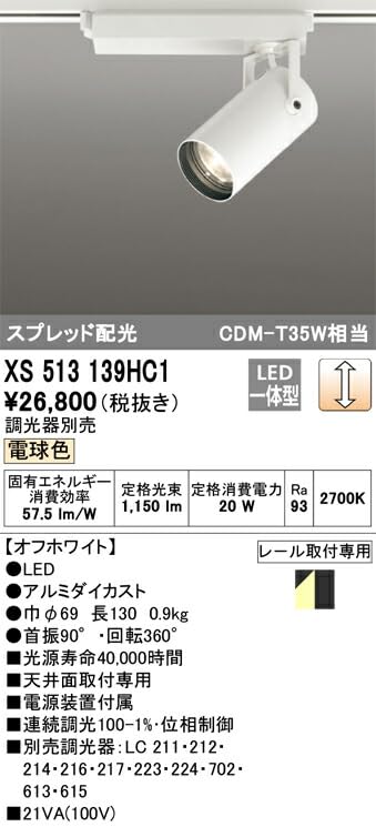 ODELIC オーデリック LEDスポットライト XS513139HC1
