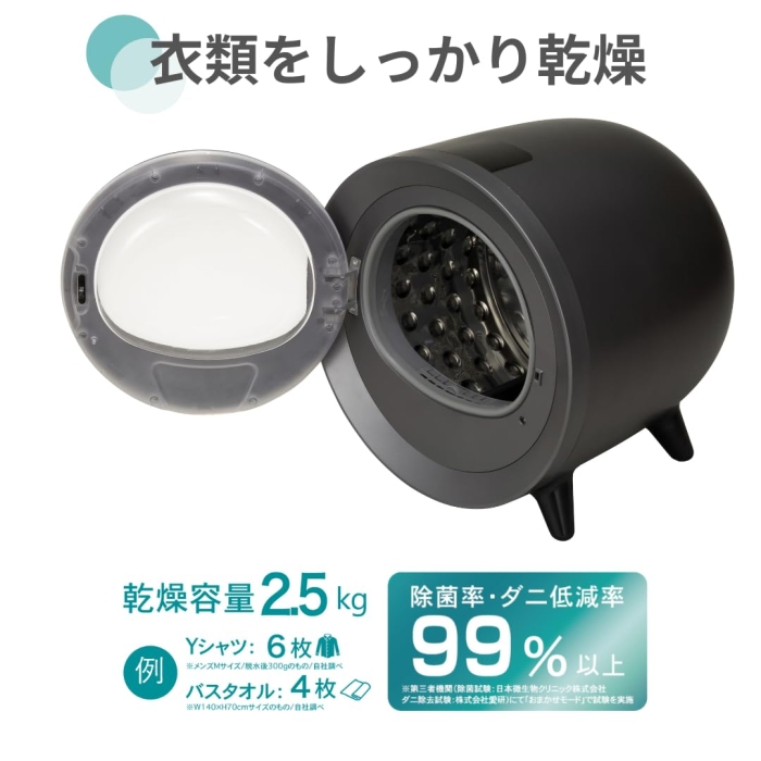 容量:2.5kg 乾燥方式:電気 主な機能:ヒーター乾燥 幅x高さx奥行き:505x532x495mm