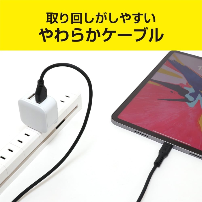 ナカバヤシ ミヨシ シリコンUSB2.0ケーブル AtoC 0.5m ブラック USB-YCA05/BK