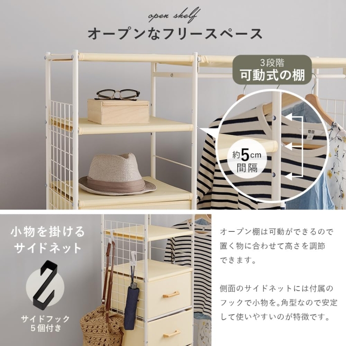 (約)幅82.5×奥行40×高さ155cm■組立式■キャスター付(内2個ストッパー付)