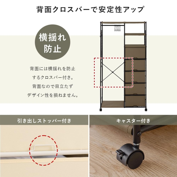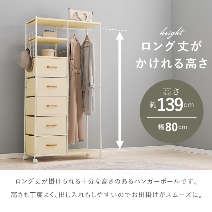 (約)幅82.5×奥行40×高さ155cm■組立式■キャスター付(内2個ストッパー付)