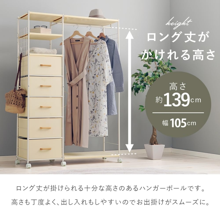 (約)幅107.5×奥行40×高さ155cm■組立式■キャスター付(内2個ストッパー付)