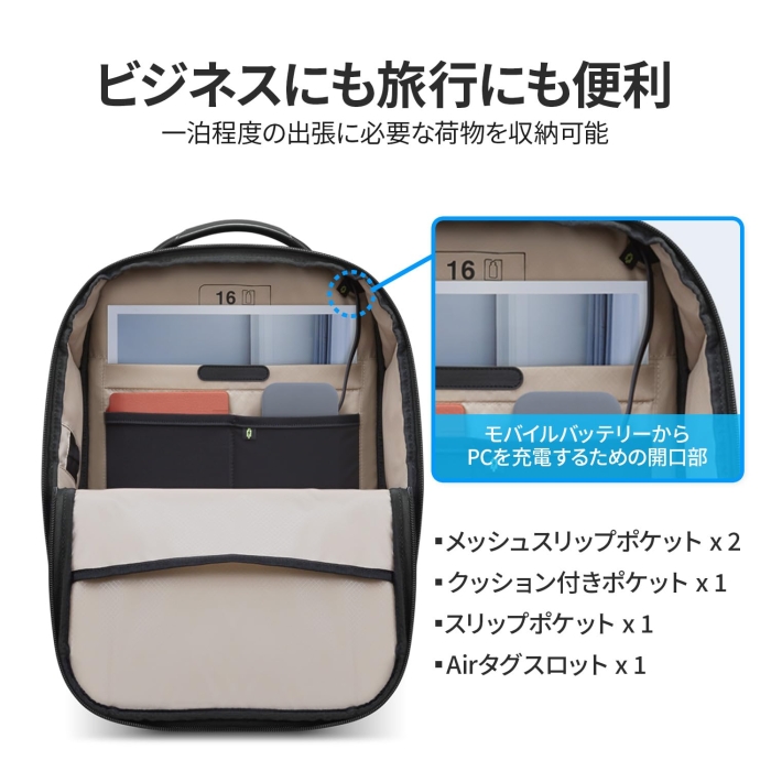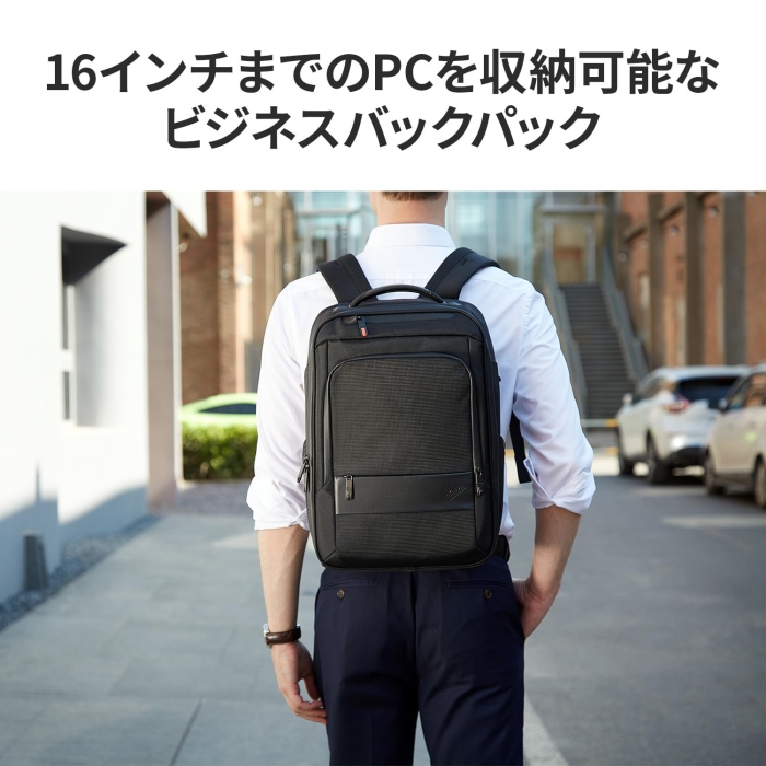 - [ケース/カバー(モバイル)]軽量、耐久性に優れたリサイクルPET素材を採用した最大16インチPCを収納可能なビジネスバックパックです。