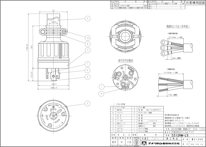 アメリカ 引掛形 防水形プラグ 3312RW-L5 ボウスイガタプラグ E2P