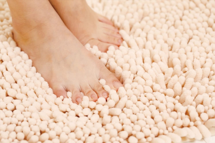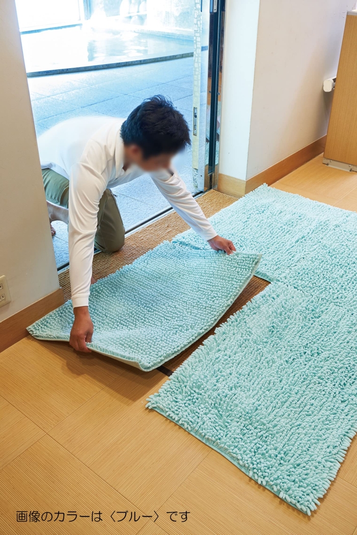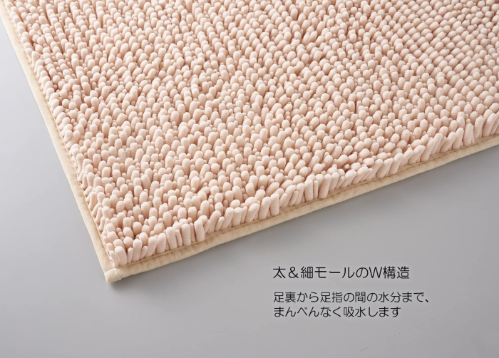 ●材質:パイル/ポリエステル(モール糸)●超極細繊維のマイクロファイバーを使ったモール糸の毛細管現象が、足の土踏まずや指の間の水分まで素早く吸い取ります。●マイクロファイバーに吸収された水分は、毛細菅現象でグングン拡散され蒸発していくので、 いつもマットの表面はサラサラの肌触りです。●繊維には抗菌防臭加工が施されており衛生的に使用できます。●安心のズレにくいバッキング採用で、自在に敷きつめることが可能です。