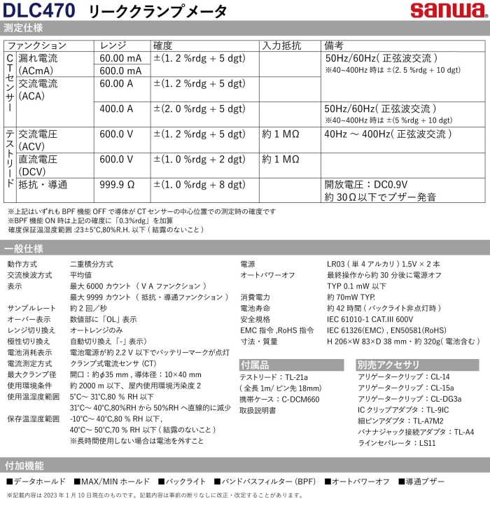 ECJOY!では SANWA リーククランプメータ (DLC470 3288) をはじめ、その他商品も取り揃えておりますので、あわせてご利用ください。