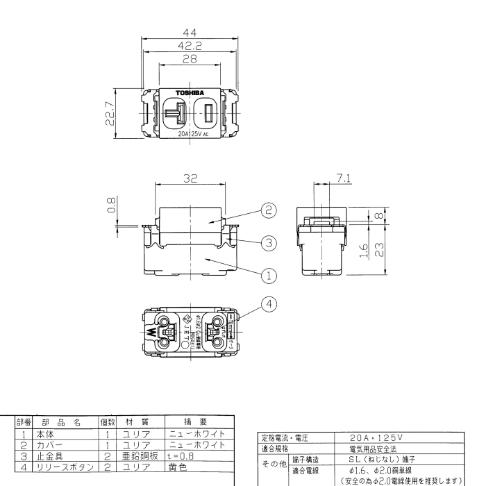 TOSHIBA 東芝 15A・20A兼用コンセント NDG2411(WW)