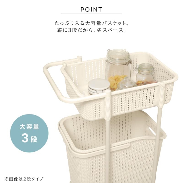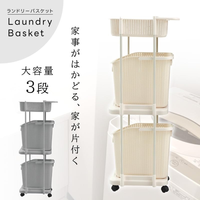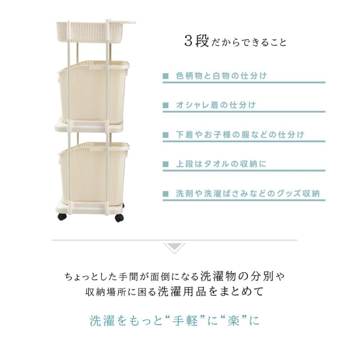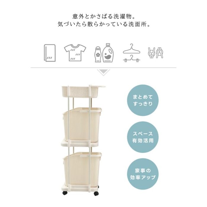 ビータ(Vita) ラタン調樹脂ランドリーバスケット 3段深型 アイボリー 【TAN-277-3D-IV】