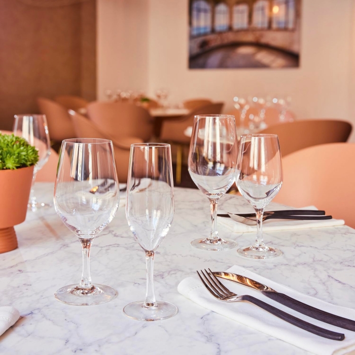 ●エヴィデンスシリーズショートステムグラスはエレガントなシーンにも、和食のテーブルシーンにもよく合います。