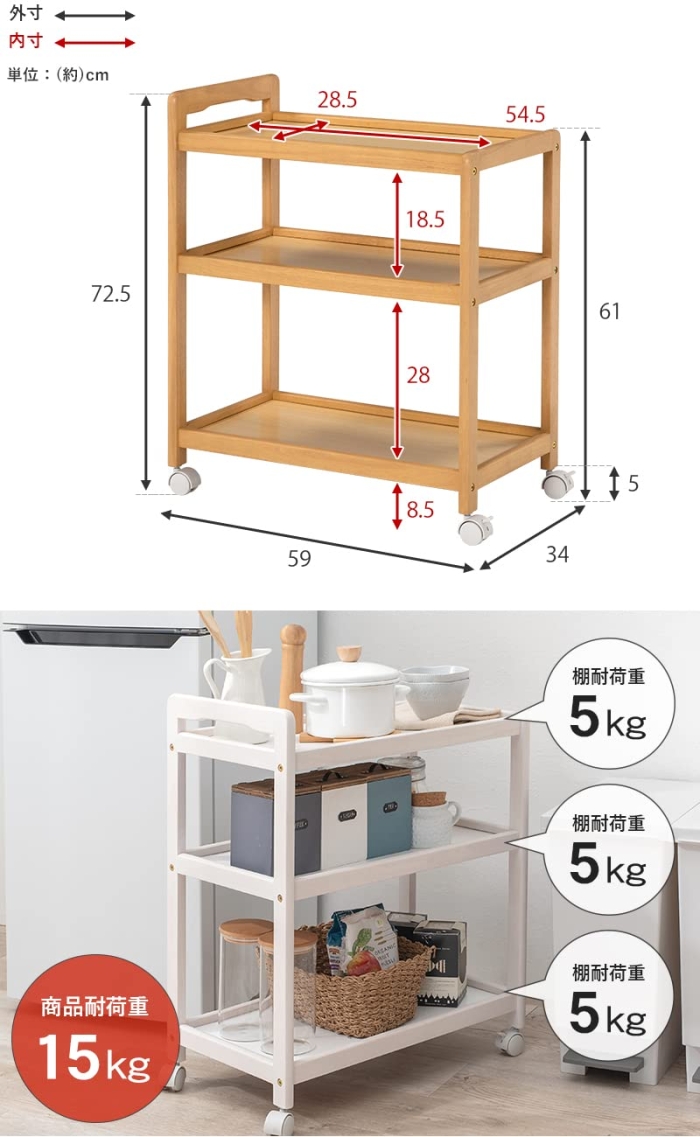 HAGIHARA 萩原 キッチンワゴン VW-7977WS ※北海道、沖縄、離島配送不可