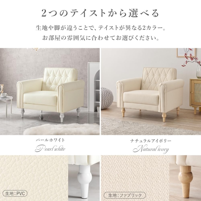 HAGIHARA 萩原 ソファ ライラ1P-PWH ※北海道、沖縄、離島配送不可