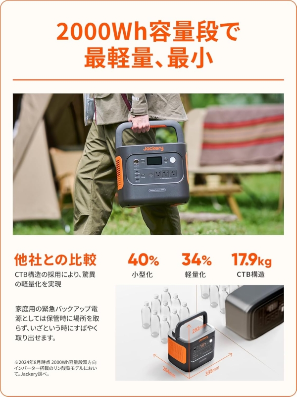 [Jackery][バッテリー]大容量、10年使える長寿命、安心5年間のメーカー保証付きポータブル電源 ◆ ポータブル電源、2042Whの超大容量、定格出力2200W