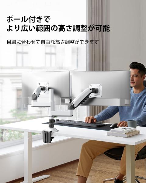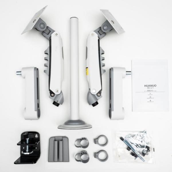 HUANUO ガススプリング式モニターアーム 13-32インチサイズモニター対応 デュアル画面 ホワイト HNDS32W