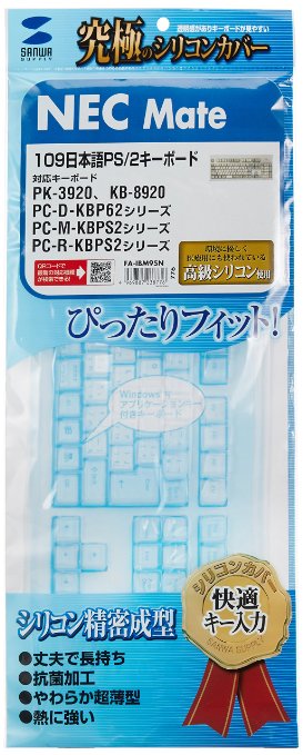 [サンワサプライ][キーボードアクセサリー]NEC MATE用PS/2 109キーボード用シリコン製キーボードカバー。 ◆ NEC MATE用PS/2109キーボード用キーボードカバー。シリコン製。FA-TIBM95のシリコン版です。医療現場でも使われている、高級シリコンを使用しています。破れにくく、丈夫な素材。復元性にも優れています。ソフトタッチで、手にやさしい。腱鞘炎を防ぐ効果もあります。お茶やコーヒーがこぼれても安心。中性洗剤であらえます。