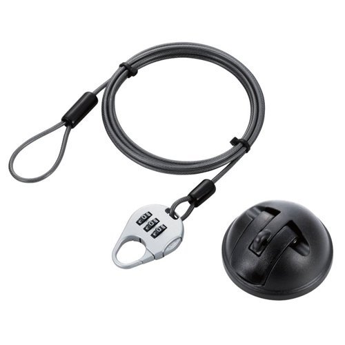 [エレコム][盗難防止用品]■セキュリティスロットのないタブレット・薄型ノートPCを盗難から守ります。強力な吸盤で機器に固定します。 ■タブレット・薄型ノートPCに取り付けた吸盤に、ダイヤル錠でロックすることができます。 ■本体が丸く、握りづらいので、容易に取り外しできません。 ■取付面をきれいにしてください。表面にシボなどザラつきがある場所には、取り付けができません。 ■強力な吸盤で取り付けますが、時間の経過とともに緩みが生じる場合がございます。1ヶ月を目安に、付け直しいただくことを推奨いたします。 ■吸盤ですので、使用状況によっては外れる場合がございます。簡易的なセキュリティとしてご利用お願い致します。 ■ワイヤーにはビニールコーティングを施し、ワイヤーによるデスクなどへのキズを防止します。 ■対応機種:タブレット・薄型ノートPC ■ロック方式:ダイヤル錠 ■セット内容:本体x1、セキュリティワイヤーx2、取扱説明書x1 ■ワイヤー長:1.8m ■ワイヤー太さ:Φ3mm ■ワイヤーカバー:塩ビ ■キー仕様:ダイヤル錠 ■質量:本体:48g、セキュリティワイヤー:68g ■材質:ダイヤル錠:亜鉛合金、吸盤:ゴム ■パッケージ形態:段ボール箱 ◆ セキュリティスロットのないタブレット/薄型ノートPCを盗難から守ります。強力な吸盤で機器に簡易に固定します。