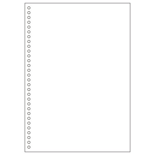 [ビジネスフォーム]A4サイズ 白。ファイル穴30穴付き。100枚入り。FSCミックス認証紙使用。 ◆ A4サイズ 白紙。100枚入り。ファイル穴:30穴。紙厚:0.08mm、坪量64g/m2。日計表や月計表、元帳などの印刷に。プリンタを選ばないマルチタイプ。用紙裏面に品番等が印刷されています。FSCミックス認証紙使用。