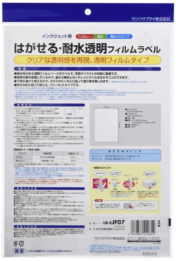 ECJOY!では はがせる耐水透明フィルムラベル LB-EJF07 をはじめ、その他商品も取り揃えておりますので、あわせてご利用ください。