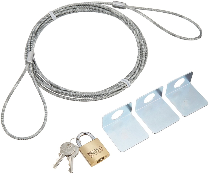 [サンワサプライ][防犯・防災用品]金具を両面テープでパソコンなどに貼り付けるだけの簡単ロックタイプ。 ◆ ディスプレイやプリンタなどとパソコンを最大3台まで盗難から守ります。南京錠タイプです。