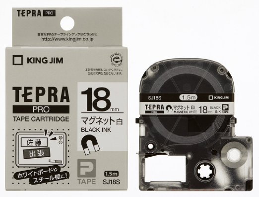 KING JIM キングジム PROテープマグネット SJ18S 白に黒文字18mm