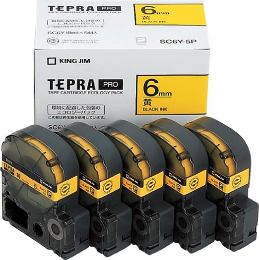 KING JIM キングジム PROテープ SC6Y-5P 黄に黒文字 6mm 5個