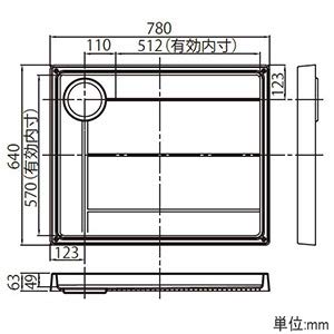 テクノテック 防水パン TP780 サイズ(mm):780×640×63 アイボリーホワイト 穴位置:R