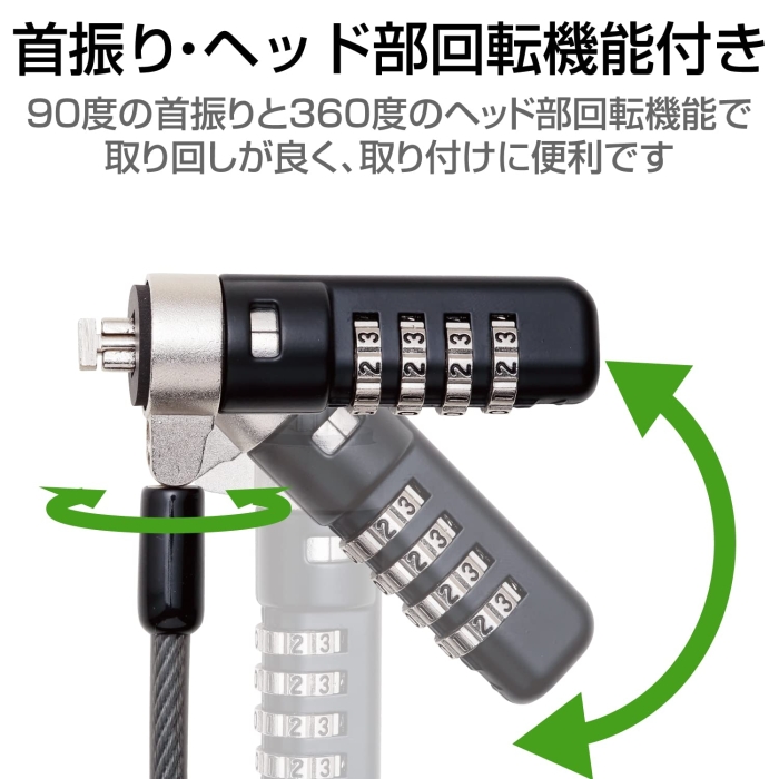 ELECOM エレコム セキュリティワイヤー/4連ダイヤル錠/首振り90度/ヘッド部360度回転(ESL-38)