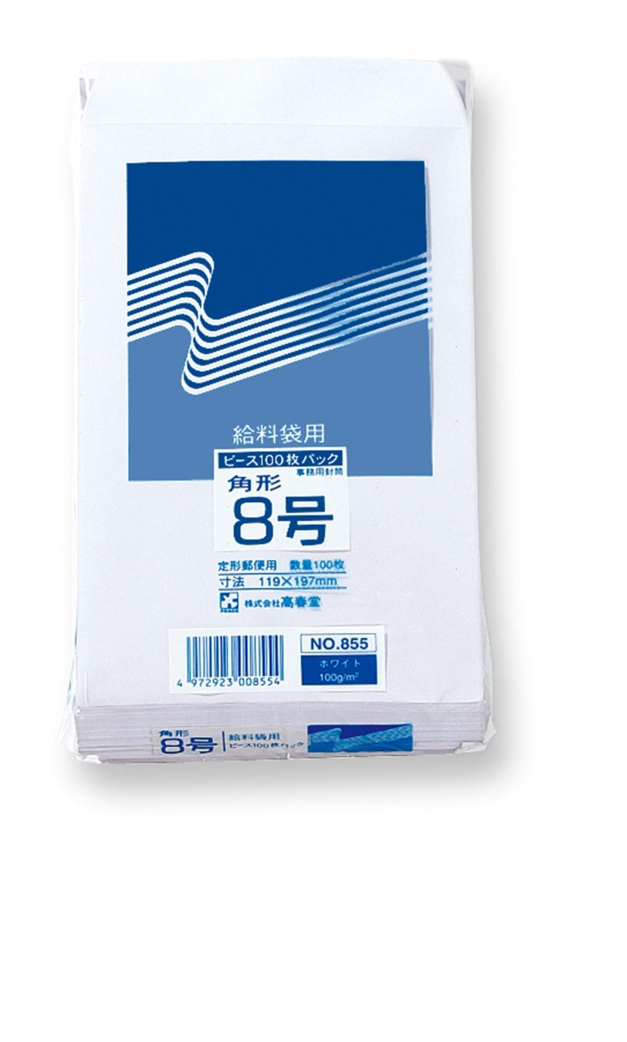 高春堂 封筒 ピース 角8ホワイト100g/平方メートル 100枚パック (855 K-8)「単位:フクロ」