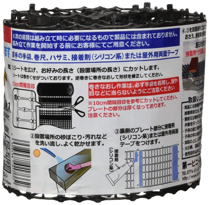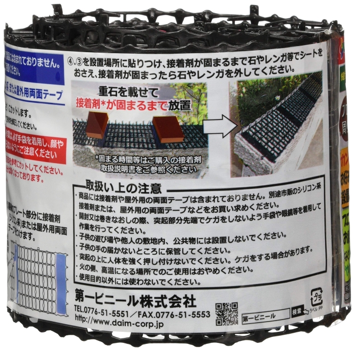 ・商品には接着剤や屋外用の両面テープは含まれておりません。別途市販のシリコン系接着剤または、屋外用の両面テープなどをお買い求めください。・開封又は巻きなおしの際、突起部分先端でケガをしないよう手袋やメガネ等を着用して作業を行ってください。