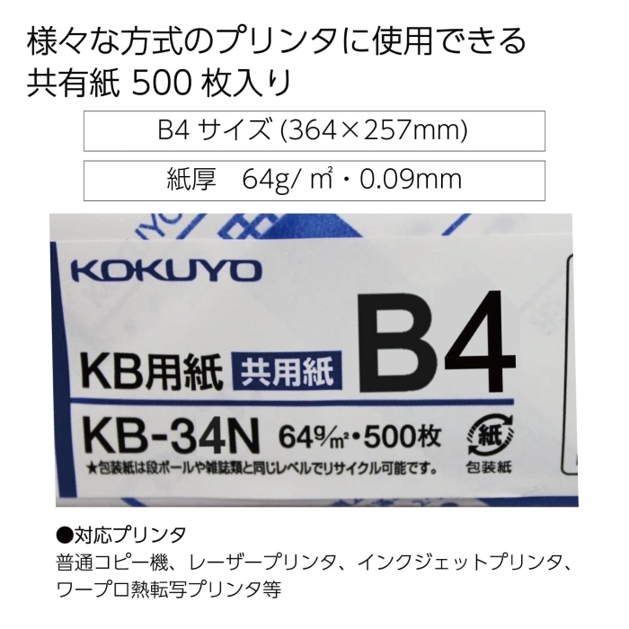コクヨ KB-34N KB用紙(共用紙)FSC認証64g/m2 B4 500枚(KB-34N)
